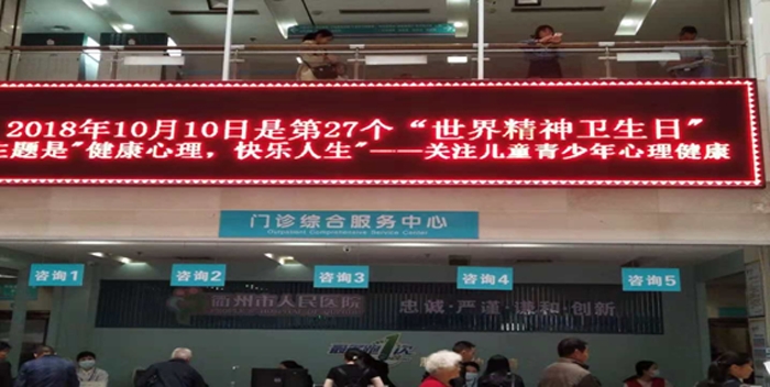 ??? 在門診大廳服務(wù)臺(tái)及門診候診室等處擺放心理健康相關(guān)的宣教折頁,還通過門診大門及大廳內(nèi)醒目的LED屏、醫(yī)院內(nèi)網(wǎng)0A網(wǎng)、醫(yī)院微信群等方式進(jìn)行宣傳。