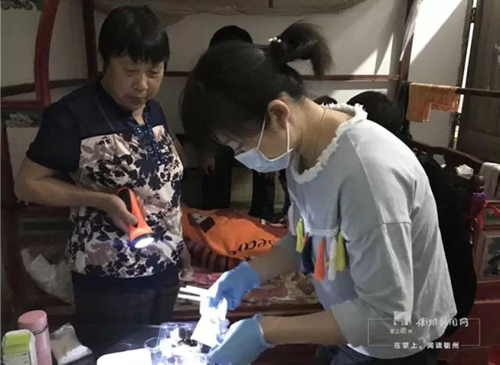 ??? 5月23日晚上8時左右,放心不下的王榮又為老太太買來碘酒、棉球,還有一個專門貼褥瘡的敷貼,再次到老太太的家里為其換藥,并交代老太太的子女該如何換藥和導尿。“奶奶,我明天再來看你,你好好養(yǎng)病,放心吧,您的孩子都很孝順?!迸R走時,王榮讓老太太放心。