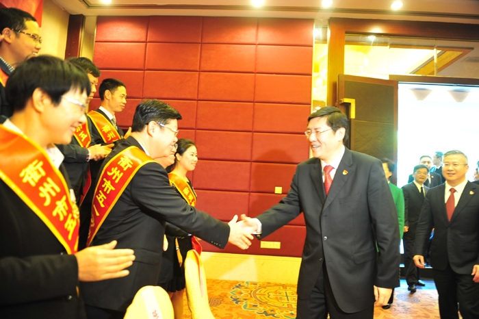 ??? 歷屆勞模代表為全市勞模頒發(fā)榮譽證書