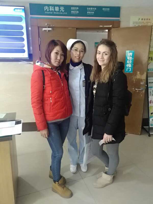 ??? 吳飛翔一直陪同NQSTYQ到看病結(jié)束。雖然語言不通,但兩位俄羅斯姑娘在他鄉(xiāng)的就醫(yī)過程卻十分順利。面對門診護士周到的服務(wù),她們一邊用生澀的中文說著謝謝,一邊豎起大拇指夸贊!