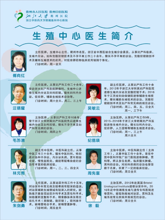 ??? 衢州市人民醫(yī)院生殖中心地點(diǎn):門診大樓三樓