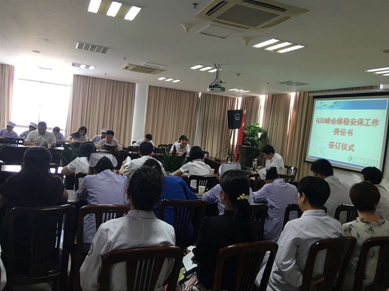 ??? 同時(shí)陳院長(zhǎng)對(duì)G20峰會(huì)安保維穩(wěn)工作提出了要求:一是高度重視,提高政治敏感性。要把這項(xiàng)工作作為當(dāng)前頭等大事來(lái)抓,繃緊安全這弦,確保萬(wàn)無(wú)一失。二是迅速行動(dòng),全面排查安全隱患。加強(qiáng)信訪維穩(wěn)、保衛(wèi)、消防、重點(diǎn)時(shí)段、醫(yī)療質(zhì)量、?;芳岸韭榫幤返确矫婀芾?;加強(qiáng)各類突發(fā)事件應(yīng)急處置;加強(qiáng)宣傳輿論引導(dǎo)。三是堅(jiān)決整改,措施到位不走過場(chǎng)。四是嚴(yán)肅問責(zé),盡心履職敢于擔(dān)當(dāng)。全力做好各項(xiàng)工作,為G20峰會(huì)召開提供規(guī)范有序的醫(yī)療衛(wèi)生安全保障。