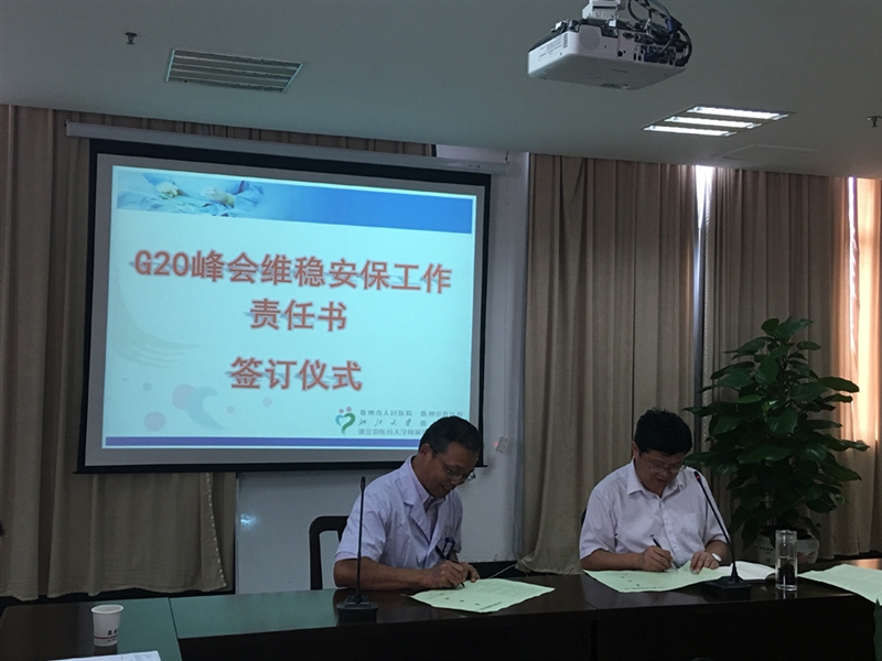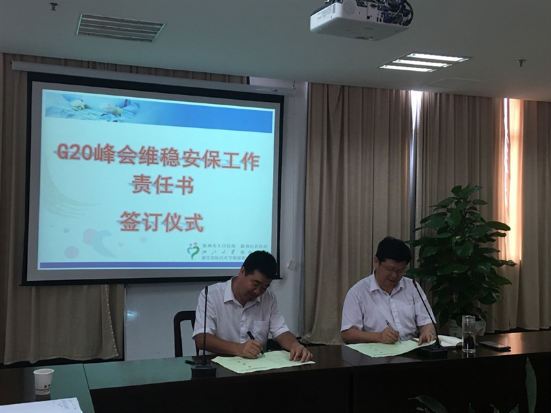 ??? 陳震宏院長(zhǎng)與部門、科室代表簽訂《衢州市人民醫(yī)院G20峰會(huì)維穩(wěn)安保工作責(zé)任書》。