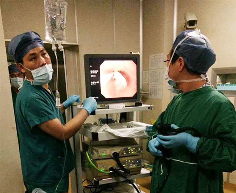 ??? 難度很大,葉泉忠沒(méi)有放棄,耐心地朝多個(gè)方向轉(zhuǎn)動(dòng)網(wǎng)籃,在助手程義仙護(hù)士的密切配合下,輕輕套住了棋子,隨后又用巧力將其拉出咽喉部。
