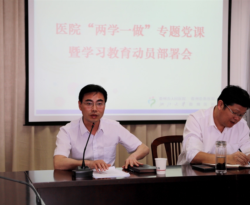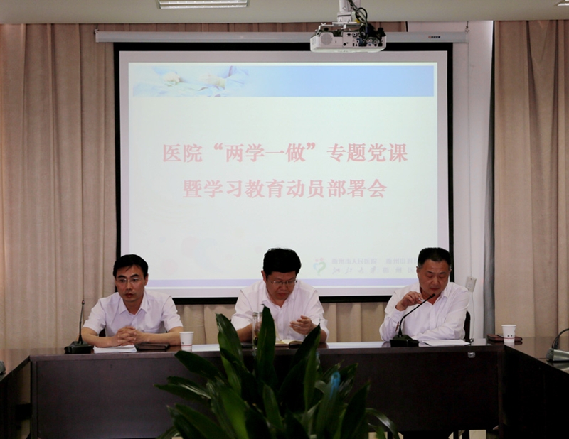 ??? 5月16日下午,我院黨委在十二樓會議室召開“兩學(xué)一做”專題黨課暨學(xué)習(xí)教育動(dòng)員部署會。黨委副書記、紀(jì)委書記吳善水主持會議,院領(lǐng)導(dǎo)班子、臨床醫(yī)技科室主任、護(hù)士長、各黨支部委員及普通黨員代表共200余人參加了會議。