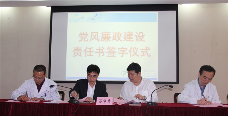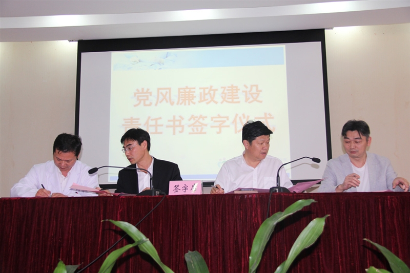 ??? 院長(zhǎng)陳震宏、黨委書記徐天才與內(nèi)科片、外科片、重癥醫(yī)學(xué)科、藥學(xué)部、設(shè)備處、信息處等科室代表簽訂2016年黨風(fēng)建設(shè)和廉政反腐工作責(zé)任書,逐一落實(shí)責(zé)任,同時(shí)要求,全院干部職工要明確責(zé)任,履職盡責(zé),勇于擔(dān)當(dāng),大力營(yíng)造遵規(guī)守紀(jì)、風(fēng)清氣正、干事創(chuàng)業(yè)的行業(yè)氛圍。