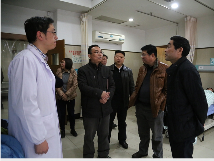 ??? 2月4日下午,衢州市衛(wèi)計委主任陳根成一行到我院慰問春節(jié)期間工作在一線的工作人員,并仔細詢問了安全生產(chǎn)的相關情況,叮囑相關人員一定要注意節(jié)日期間醫(yī)療安全、生產(chǎn)安全、消防安全,防患于未然。