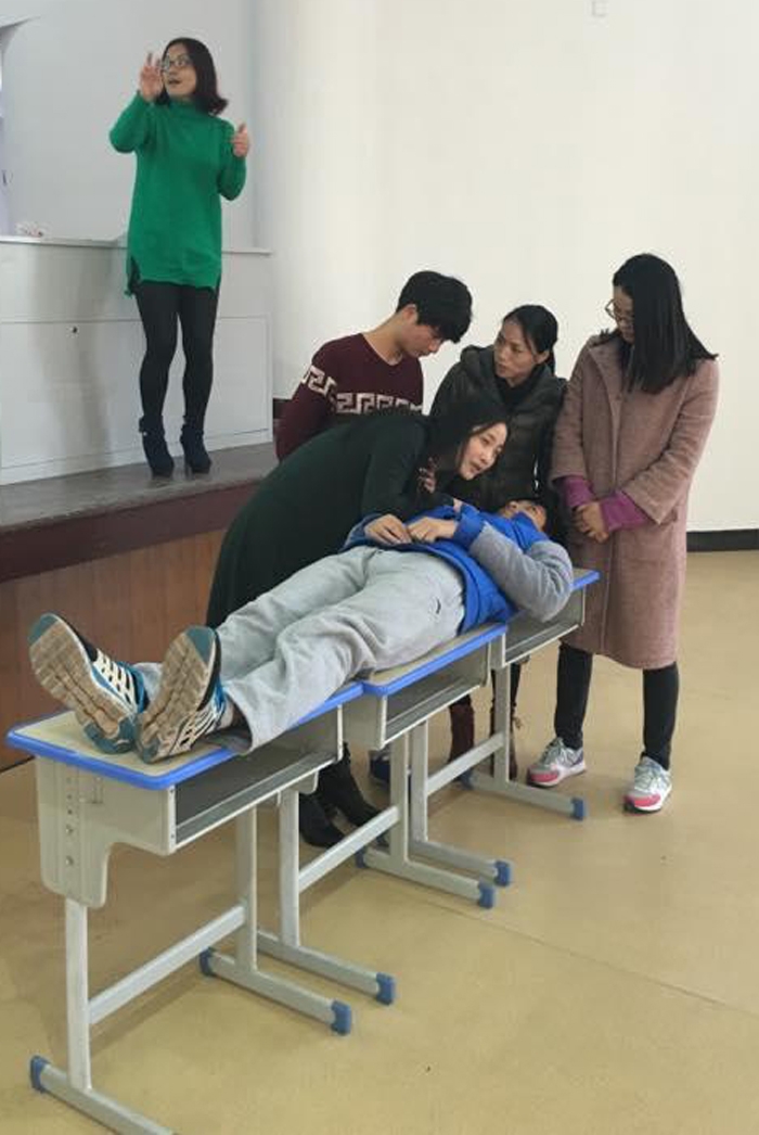 ???? 本次講座內(nèi)容有心肺復(fù)蘇、氣道梗阻的急救和外傷的處理,由聾啞學(xué)校老師全程手語翻譯。課堂上孩子們聽得很入迷,志愿者手把手教孩子們急救的方法和技能,孩子們爭先恐后的上臺(tái)參與示范。