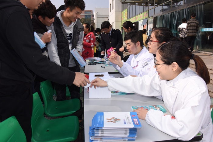 ??? 今日,市疾控中心、市出入境檢驗檢疫局和我院聯(lián)合在衢州職業(yè)技術學院舉行系列宣傳活動,旨在讓更多的大學生了解與預防艾滋,讓更多的人關愛那些飽受艾滋折磨的人,使艾滋病人遠離歧視和偏見。