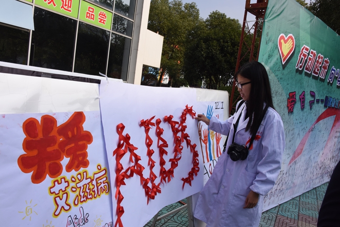 ??? 為體現(xiàn)“零”艾滋中零歧視的觀念,我們呼吁大家,給艾滋病患者一個擁抱,讓他們有信心戰(zhàn)勝病魔。同學們在“行動起來,向‘零’艾滋邁進”的橫幅上執(zhí)筆簽字來表達自己對“零”艾滋的決心和對艾滋病人的關懷,承擔了一份任重而道遠的責任。