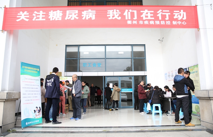 ??? 2015年是國(guó)際糖尿病聯(lián)盟在未來(lái)三年糖尿病系列活動(dòng)延續(xù)之年,2014-2016年糖尿病日將圍繞著“健康生活與糖尿病”的主題開(kāi)展系列活動(dòng)。為了讓更多的市民朋友進(jìn)一步了解糖尿病,認(rèn)識(shí)健康的生活方式,積極預(yù)防和治療2型糖尿病,避免并發(fā)癥的發(fā)生,倡導(dǎo)健康的生活方式和生活環(huán)境,11月14日下午,衢州市人民醫(yī)院在浮石(徐家塢)院區(qū)開(kāi)展了“關(guān)注糖尿病,我們?cè)谛袆?dòng)”的主題科普活動(dòng)。