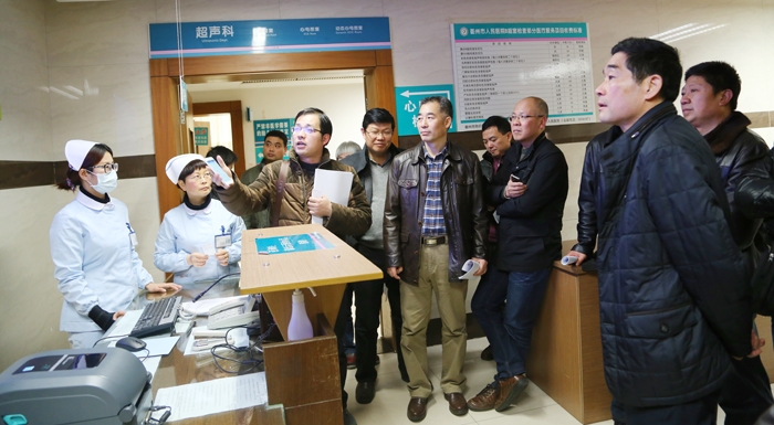 ??? 市衛(wèi)生信息中心負責人胡雅國現場介紹了“智慧衛(wèi)生健康衢州”具備的六大功能,即在線預約掛號、檢驗檢查查詢、院外候診服務、區(qū)域影像共享、區(qū)域診療信息、醫(yī)療服務評價。市局領導一行分別到門診大廳的自助服務區(qū)、醫(yī)生診室工作站、檢驗科、超聲科、放射科等地點,現場體驗了各項功能的應用,交流和探討實際使用過程中存在的問題及改進意見。