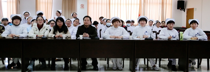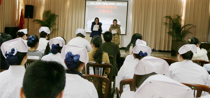 ??? 1月9日下午,2013級(jí)“衢醫(yī)班”以“做護(hù)士,你準(zhǔn)備好了嗎?”為主題的班會(huì)在我院12樓會(huì)議室舉行。衢州職業(yè)技術(shù)學(xué)院醫(yī)學(xué)院書記余文富、我院護(hù)理部主任徐勤容等參加了班會(huì)活動(dòng)。