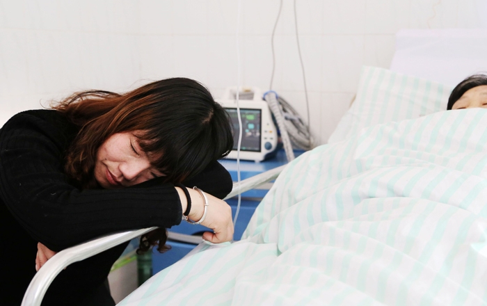 衢州市人民醫(yī)院心胸外科病房里,經(jīng)過數(shù)小時(shí)的等待,媽媽終于順利地完成了手術(shù),疲憊的女兒一直守在床邊,寸步不離。