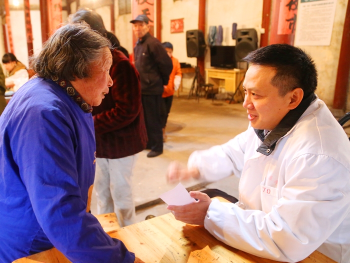 ??? 在簡陋的村禮堂內(nèi),前來咨詢糖尿病、高血壓、骨質(zhì)疏松等相關(guān)疾病的村民絡(luò)繹不絕。內(nèi)分泌代謝病科的醫(yī)生們耐心解答疑問,詳細(xì)告知其治療方案、健康保健、預(yù)防常識等,同時還免費為60余名村民提供骨密度測定、血糖及血壓的監(jiān)測服務(wù)。