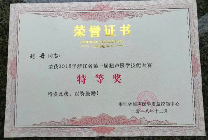 【喜訊】青年醫(yī)生劉丹在2018年浙江省第一屆超聲醫(yī)學(xué)技能大賽上斬獲桂冠