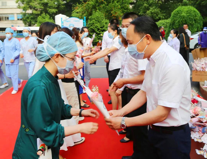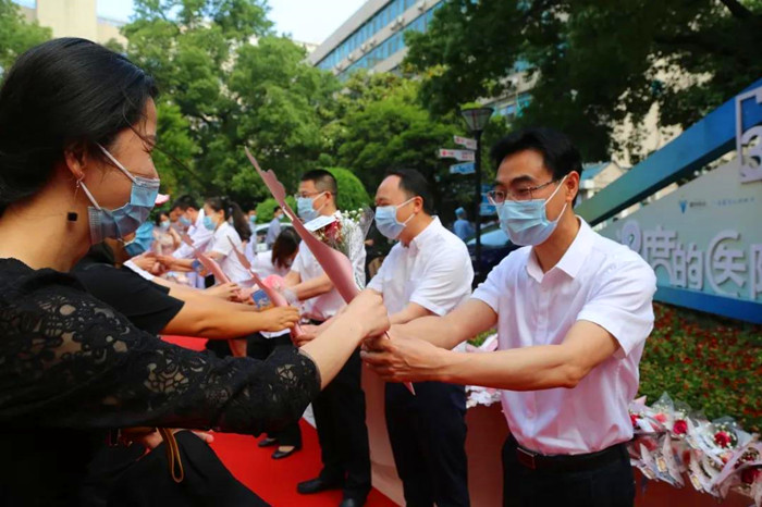 “疫路有你,致敬最美天使”清晨,在黨委書記徐天才,黨委副書記、院長葉金林的帶領(lǐng)下,八位院領(lǐng)導(dǎo)齊齊集結(jié),早早等候在院區(qū)迎接衢醫(yī)天使的到來?!肮?jié)日快樂”“你們辛苦了”第一時間向戰(zhàn)斗在一線的白衣天使送上鮮花,送上最誠摯的祝福。