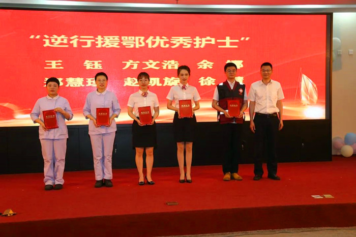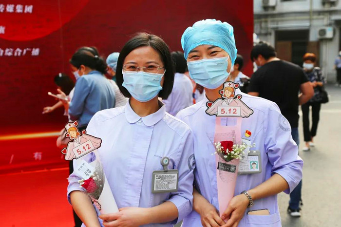 傍晚,一場以“‘疫’路有你,致敬最美天使” 為主題的5·12國際護(hù)士節(jié)暨表彰抗疫英雄慶?;顒釉卺t(yī)院舉行。市衛(wèi)健委領(lǐng)導(dǎo)、院領(lǐng)導(dǎo)班子成員、職能部門負(fù)責(zé)人以及護(hù)士代表參加。