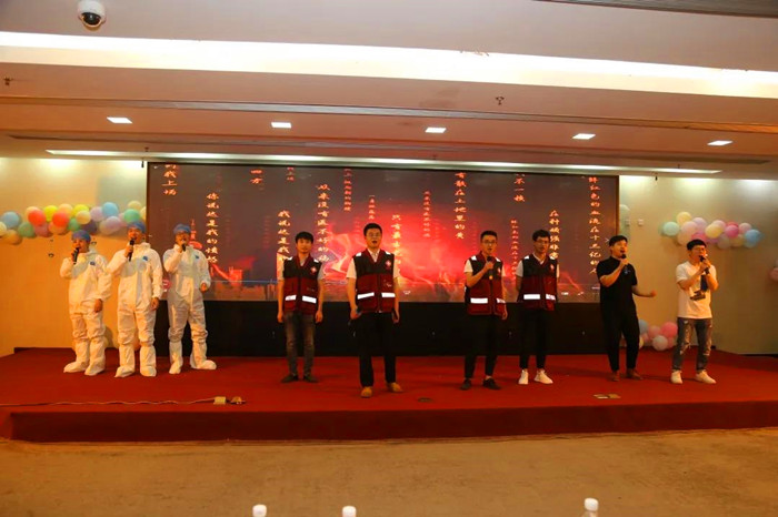 舞臺上,白衣天使用深情的講述、優(yōu)美的舞姿、生動的情景劇等表演形式向在場觀眾演繹了感人的援鄂故事以及隔離病房難忘的瞬間。男護(hù)方文浩領(lǐng)銜ICU團(tuán)隊帶來的歌伴舞《男兒情懷》將晚會推向高潮。