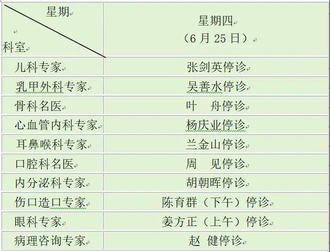 2.(6月25日)營(yíng)養(yǎng)科普通門診 (下午)停診,腎內(nèi)科普通門診(上午)停診。