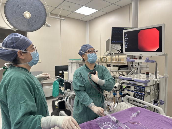 入住呼吸重癥監(jiān)護(hù)室(RICU)后,主管醫(yī)師方劍對吳爺爺?shù)牟∏檫M(jìn)行充分評(píng)估,并申請了科內(nèi)會(huì)診,科室討論決策,由呼吸與危重癥醫(yī)學(xué)科主任金旭如領(lǐng)銜的呼吸介入團(tuán)隊(duì)為吳爺爺施行支氣管鏡下介入治療。