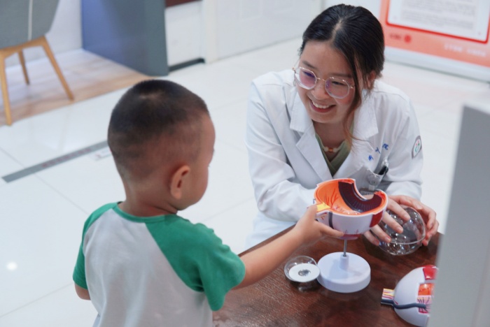 活動現(xiàn)場,醫(yī)護人員化身專業(yè)“護眼使者”,利用先進的視力篩查設(shè)備,為孩子們進行全面細致的視力檢查。每檢查完一個孩子,醫(yī)護人員都會將檢查結(jié)果耐心地向家長一一解讀,從日常用眼習(xí)慣的糾正,到近視防控的科學(xué)方法,以及營養(yǎng)補充等要點,深入淺出地講解,為家庭筑起守護視力健康的防線,助力孩子們擁有明亮未來。
