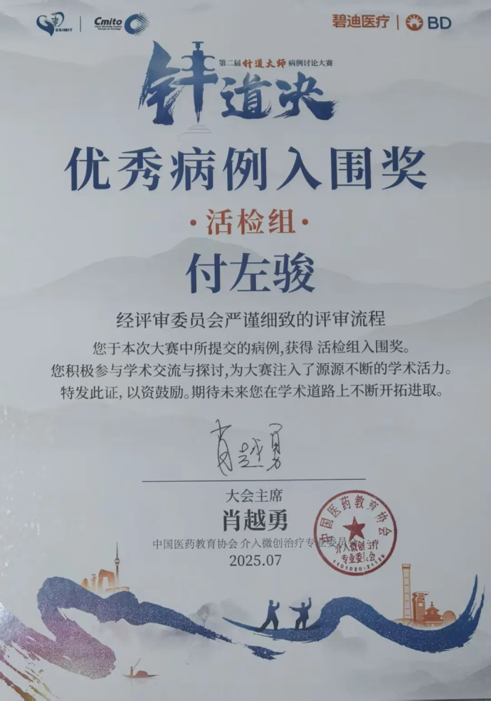 浙江唯一!超聲科青年醫(yī)師付左駿獲全國病例競賽獎